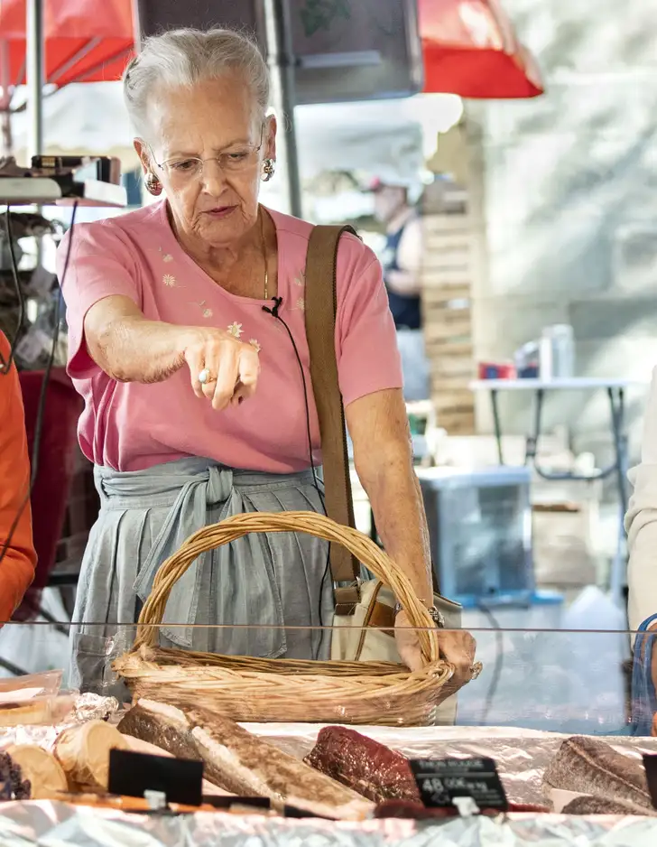 Frankrijk opgelet, je kunt zomaar de Deense koningin Margrethe tegenkomen in het wild! De stralende royal werd gespot bij een lokale markt.