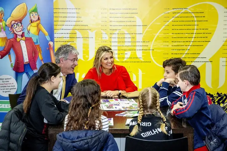Hoe dan ook, in Breda arriveerde ze in vlammend rood (dat lekker knalde met de paarse loper) en met zichtbaar goede zin, want geldzaken zijn natuurlijk helemaal haar ding. Tijdens de Week van het geld worden er op basisscholen in heel Nederland ruim 5.000 gastlessen en workshops gegeven over omgaan met geld.