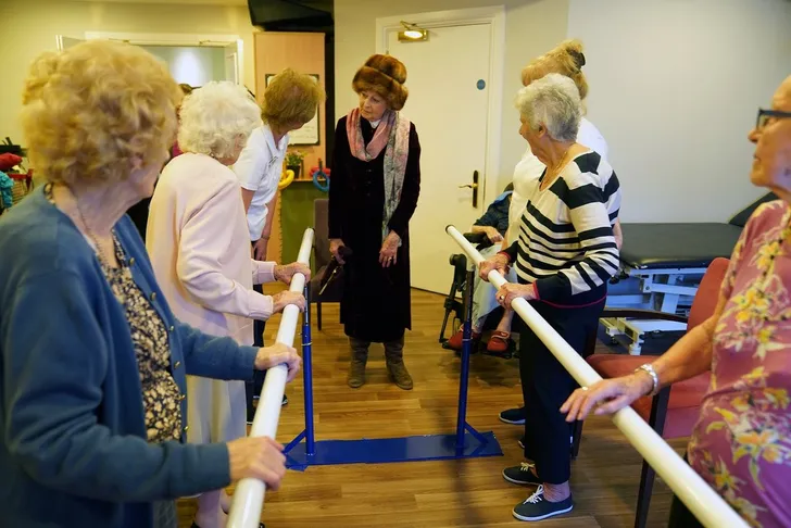 Het pleit voor Alexandra dat ze haar nicht nog altijd vertegenwoordigt bij werkbezoeken. In die hoedanigheid was ze dan ook in het Royal Star and Garter Home in Surbiton dat 103 jaar bestaat. Waarbij ze binnen haar kolossale bontmuts ophield. Wat toch een béétje het effect had van Marie-Antoinette die een encounter met het plebs niet helemaal vertrouwt en elk ogenblik wil kunnen vertrekken.