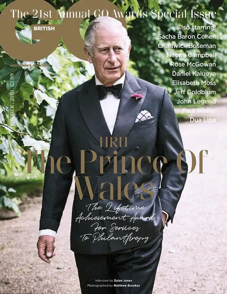 Prins Charles liet door Gentlemen's Quarterly verleiden tot een sessie ter ere van zijn 70ste verjaardag.