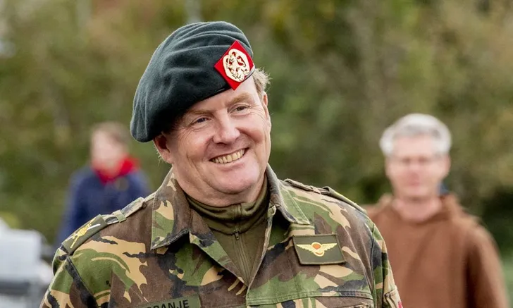 Prangende vraag: waar kleedt de koning zich op zo'n moment om? Duikt hij even een wegrestaurant in, waagt hij zich in de toiletten van een benzinestation, wipt hij even aan bij een kennis? Want je maakt ons niet wijs dat hij zich op de achterbank in deze uitrusting heeft gewrongen.