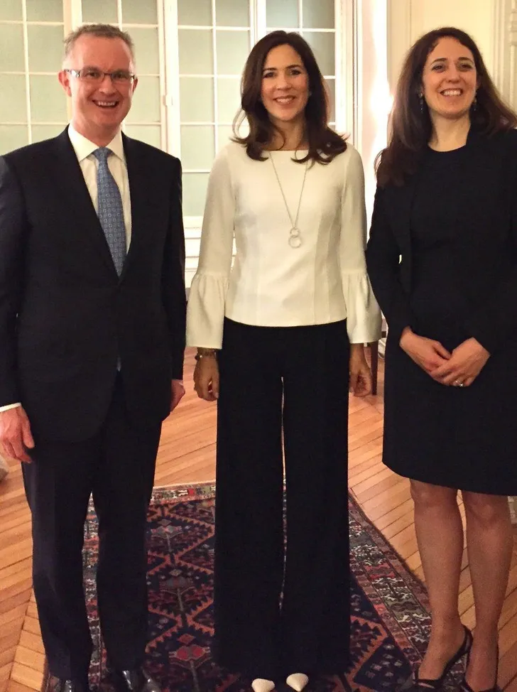 Ook kroonprinses Mary van Denemarken kan maat houden: deze Tibi top met bescheiden klokmouwen droeg ze bij een werkbezoek aan Parijs.