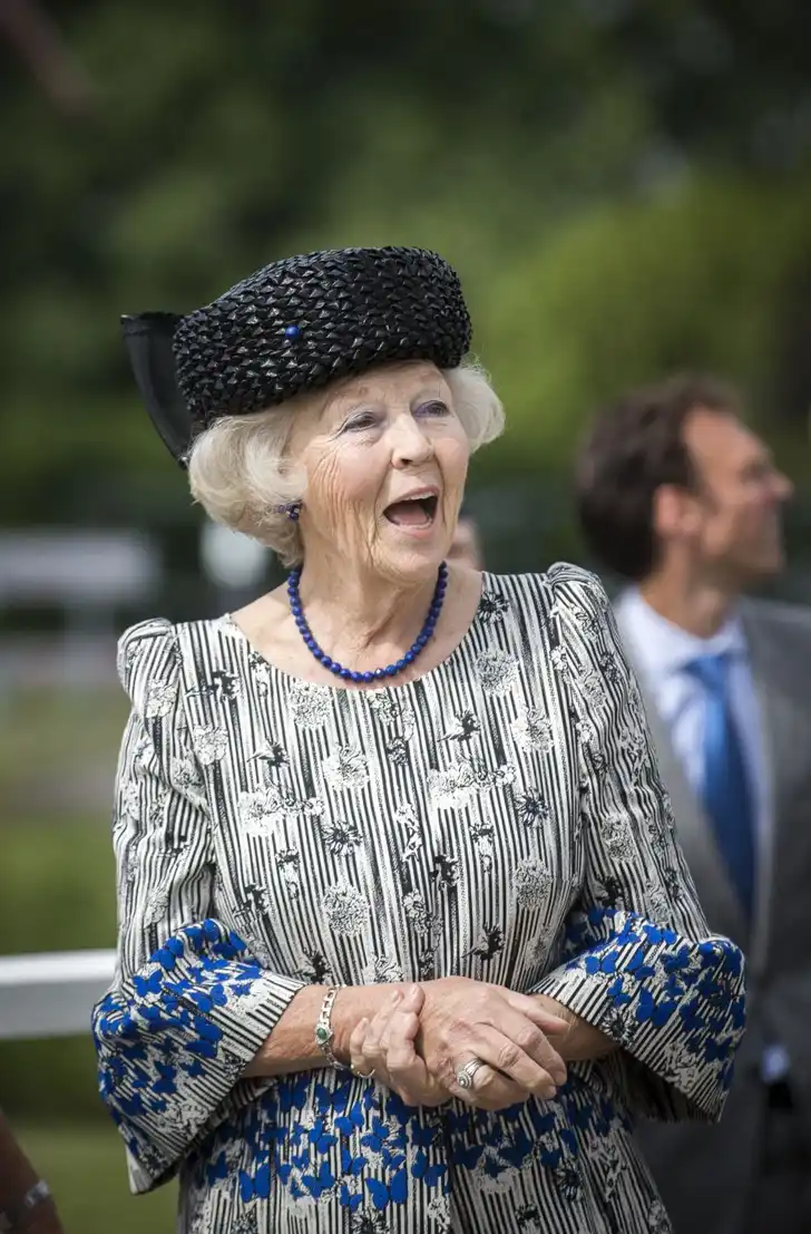 Prinses Beatrix weet eveneens wel weg met een lekkere klokmouw. Waarom ze hier een poef op haar hoofd draagt, is onbekend.