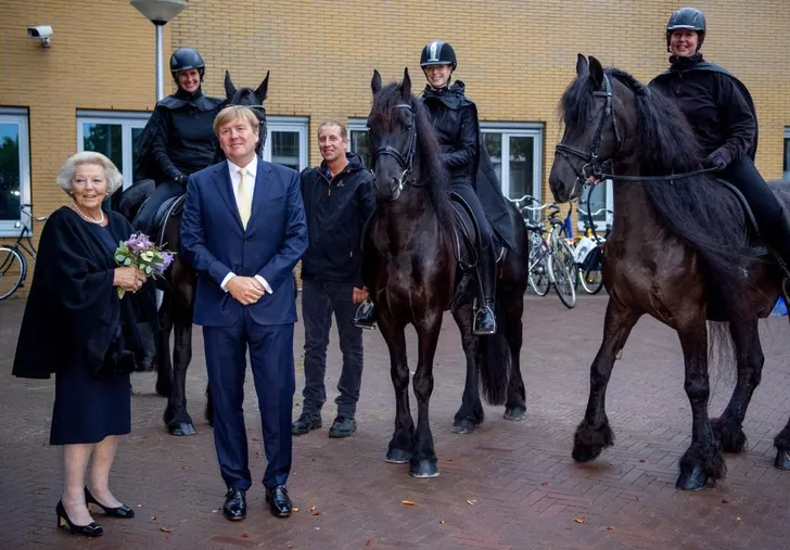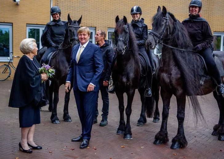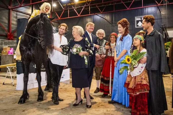 Prinses Beatrix en koning Willem-Alexander hadden een moeder-zoon avondje bij de première van de muziek- en theatervoorstelling De Stormruiter in WTC Expo in Leeuwarden.