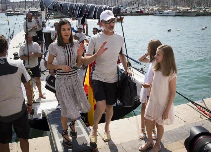 Omdat koning Felipe helemaal zeilgek is, dient zijn gezin met de echte vakantie te wachten tot Zijne Majesteit eindelijk klaar is met reven en door de wind gaan. Kijk eens wat een handige bootschoenen koningin Letizia aanheeft!