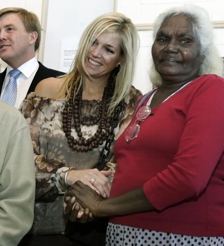 Ook koningin Máxima gooit haar blote schouders wel eens in de strijd, zoals tijdens een bezoek aan Sydney in 2006 – van deze top met de complete dagproductie van een houtbewerkingsbedrijf worden we nog wel eens badend in het zweet wakker.