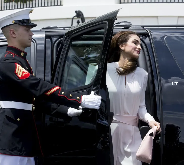 Dat bleek ook bij haar bezoek aan het Witte Huis, waar ze met haar man koning Abdullah werd ontvangen door president Trump en zijn vrouw Melania, die qua expressie al net zo sprankelt.