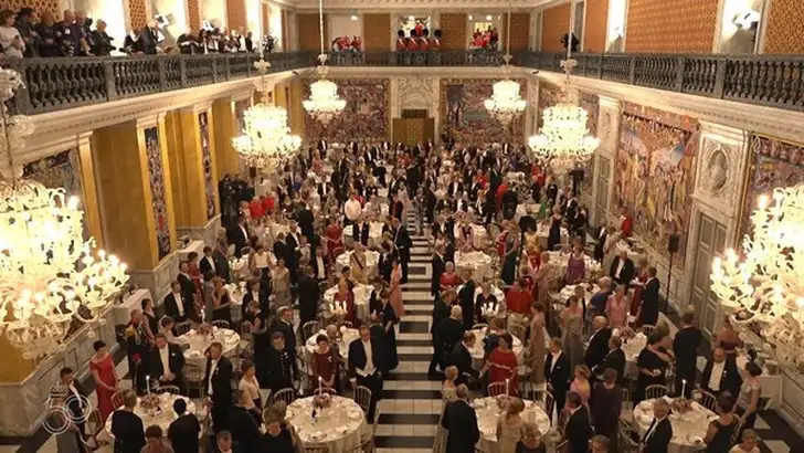 Rond een uur of zeven kwamen de eersten van 360 gasten Paleis Christianborg binnen, waar in de Ridderzaal het diner zou plaats hebben.