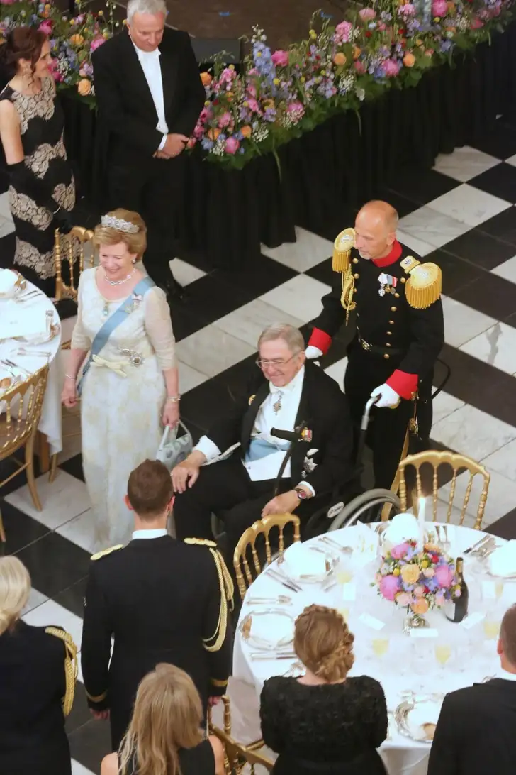 Aanwezig waren uiteraard de royal buren, zoals Noorwegen, met Mette-Marit in de Daisy Bandeau.