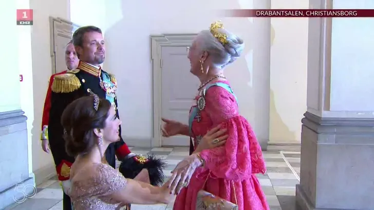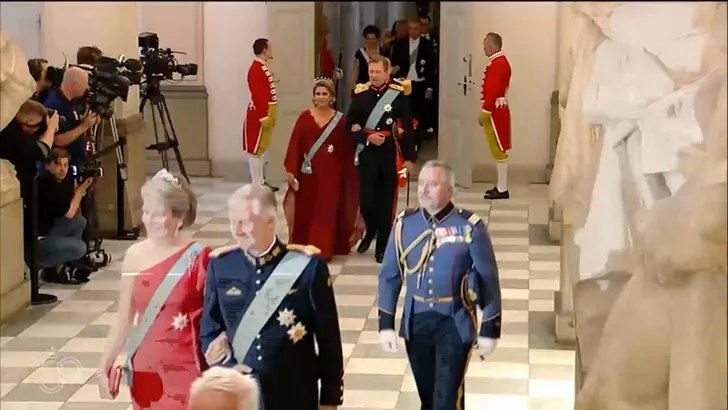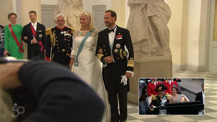 Frederik en Mary arriveerden per koets, het stel maakte nog een leuke omweg door Kopenhagen naar het feest, om ook het volk nog even een wuifmomentje te kunnen. Frederik was in gala-uniform,