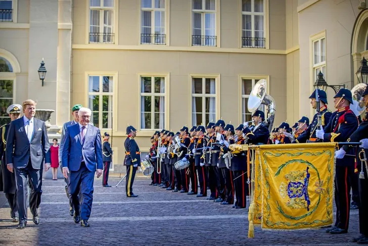 Koning Willem-Alexander heeft bondspresident Steinmeier en zijn echtgenote Elke Büdenbender ontvangen met een welkomstceremonie op Paleis Noordeinde in Den Haag.