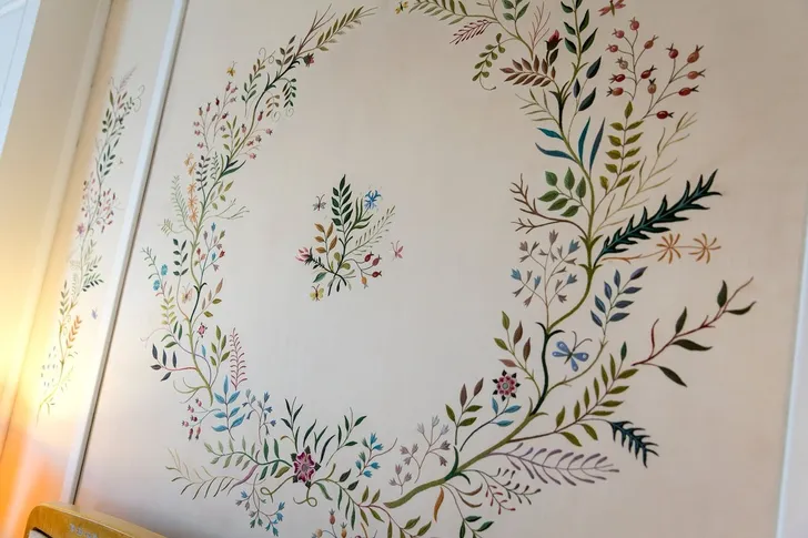 Boven het bed van Elizabeth hing een speciaal voor haar geborduurd zijden paneel met bloemen en planten die inheems zijn in Engeland, om haar aan het thuisfront te herinneren.