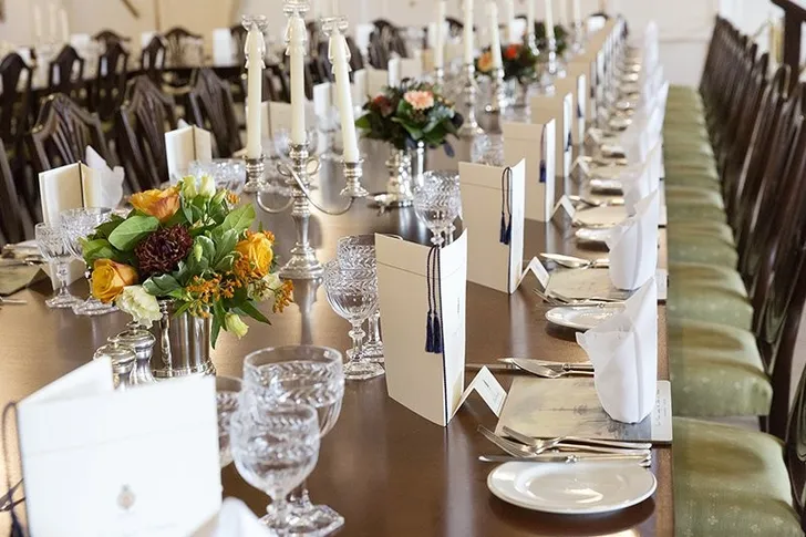In de Staatsie eetzaal was meer dan genoeg ruimte om een bescheiden staatsdiner aan boord te geven.