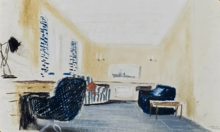 Dit was de schets voor het boordkantoor van prins Philip...