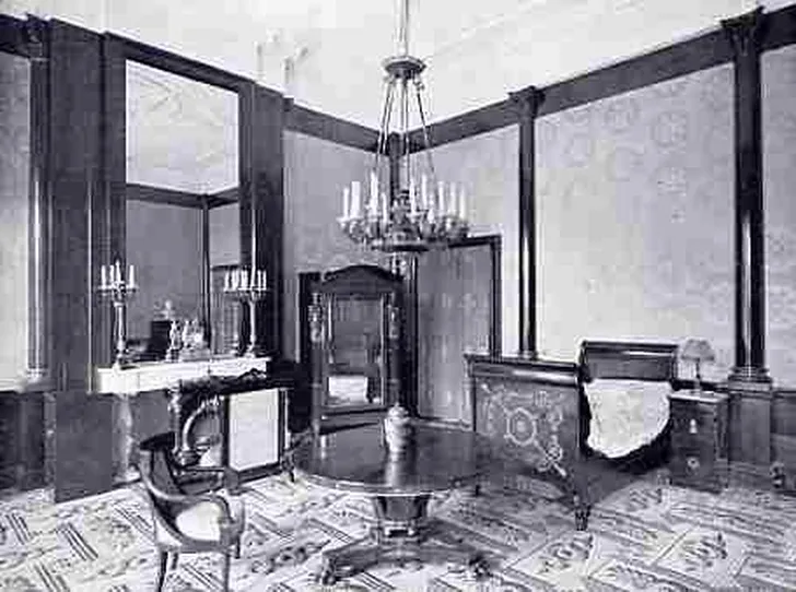 Kunsthistoricus Paul Rem plaatste op Twitter een leuk kijk-en-vergelijk-kiekje: "De werkkamer van de koning in Paleis Noordeinde in het Bruine Kwartier is ontstaan door een vroeg 20ste-eeuwse vergroting van een laat-empire vertrek naar het ontwerp van architect Jan de Greef ca 1820. De empire kleedspiegel bevindt zich in de collectie van Paleis het Loo."