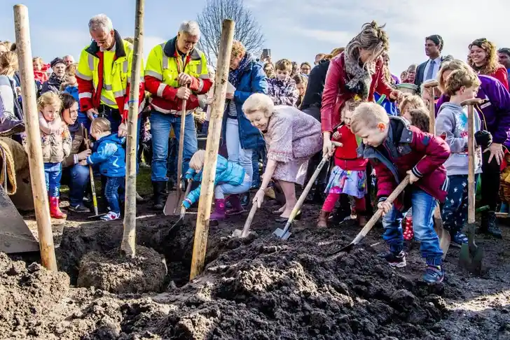 Prinses Beatrix plantte een Koningslinde in het Griftpark te Utrecht en stond daarbij letterlijk in de klei.De Koningslinde is haar in januari aangeboden door de initiatiefgroep In Vrijheid Verbonden, een netwerk van religies en levensbeschouwingen in Nederland. Wat een vrolijk pensioen heeft deze vrouw, ze lijkt er echt van te genieten...