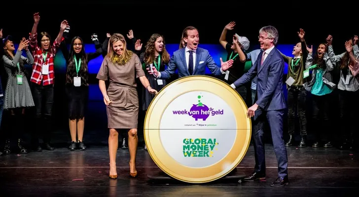 Koningin Maxima opende in de Koninklijke Schouwburg in Den Haag met leerlingen en Minister Arie Slob de nationale Week van het geld en de Global Money Week. Dat is de internationale versie van de Week van het Geld. Tijdens de week was er op basisscholen aandacht voor geldzaken, levensonderhoud en ondernemerschap.