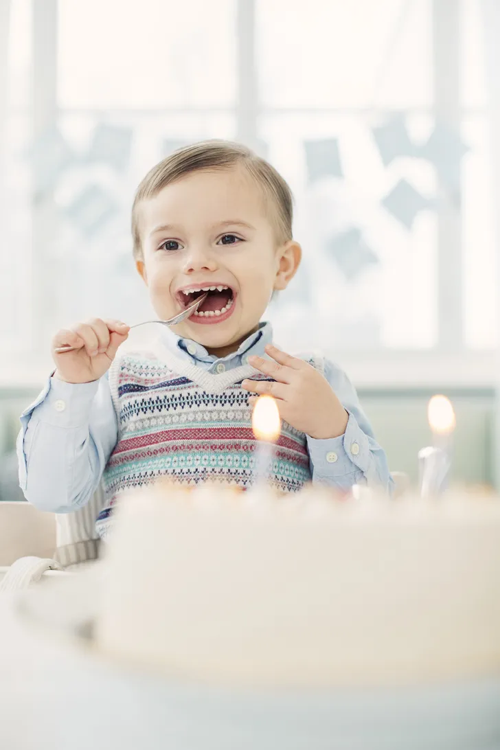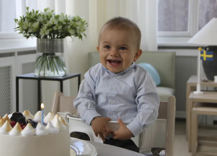 Feestje in Paleis Haga want prins Oscar van Zweden wordt vandaag twee jaar. En als er maar genoeg taart wordt geserveerd, kan er misschien ook wel een lachje van af.