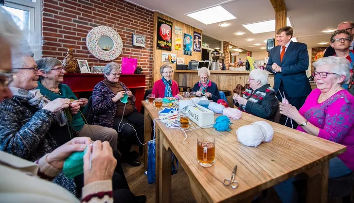 's Middags was Willem-Alexander in Everdingen waar hij een werkbezoek bracht aan stichting Vitaal Dorp. Door de inzet van deze stichting heeft Everdingen een levensmiddelenwinkel, een zorgpunt, een koffiehoek en een bibliotheek. En er wordt ook gezellig gehaakt, tegen de eenzaamheid.