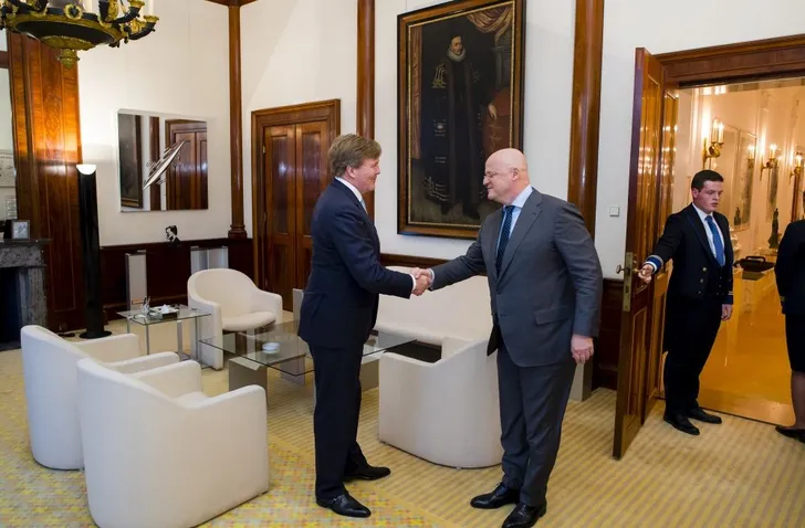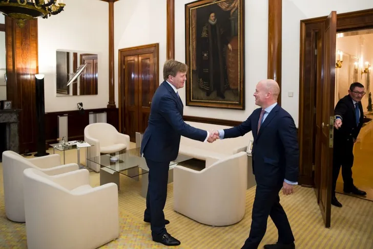 Koning Willem-Alexander ontving staatssecretaris van Infrastructuur en Waterstaat Stientje van Veldhoven voor een kennismakingsgesprek op Paleis Noordeinde. En het was heel aardig (maar vermoedelijk puur toeval) dat hij zijn das leuk op haar jurk had gestyled voor een mooie foto.