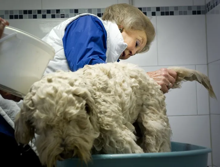 Nederland Doet en koningin Beatrix wast een hond in hondentrainingscentrum in Molenschot.