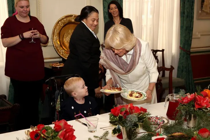 De echtgenote van prins Charles nodigt elk jaar ernstig zieke kinderen uit om te helpen de kerstboom in Clarence House op te tuigen. Ze maakt er echt een feestje van met lekkere hapjes...