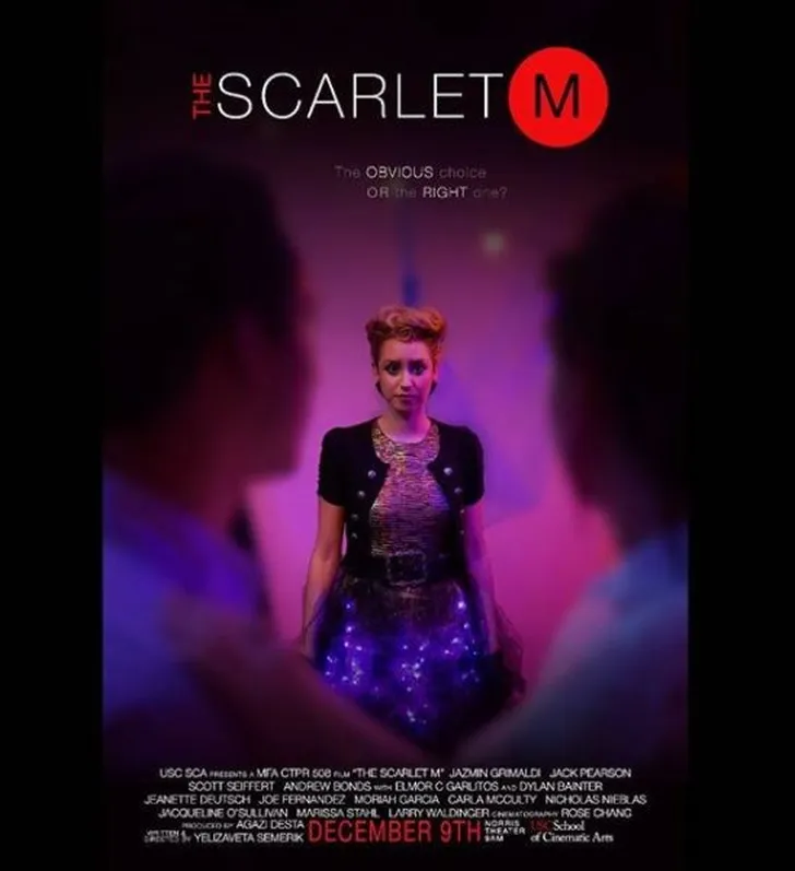 Het is niet Jazmins cameradebuut, vorig jaar speelde ze al een rolletje als caissière in 'Jay and Pluto'. 'The Scarlet M' is zo ontzettend indie en hipster dat zelfs het Norris Cinema Theatre van de filmschool in L.A. er geen beschrijving van geeft, zodat we moeten afgaan op de poster met Jazmin...