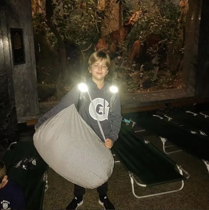 … en met zijn jongste zoon, met wie hij een nachtje in het Museum of Natural History mocht doorbrengen…