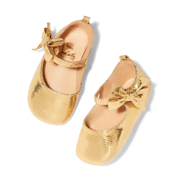De schattige schoentjes hebben de herkenbare rode zolen en uiteraard een bizar hoge prijs: ze kosten 250 dollar per paar. Jammer genoeg komen de schoentjes net iets te laat voor de nu 11-jarige Suri Cruise, (dochter van acteurs Tom Cruise en Katie Holmes). Zij kwam volop in het nieuws, omdat ze op vijfjarige leeftijd een schoenencollectie ter waarde van 150.000 dollar zou hebben (inclusief op maat gemaakte schoenen van Marc Jacobs).