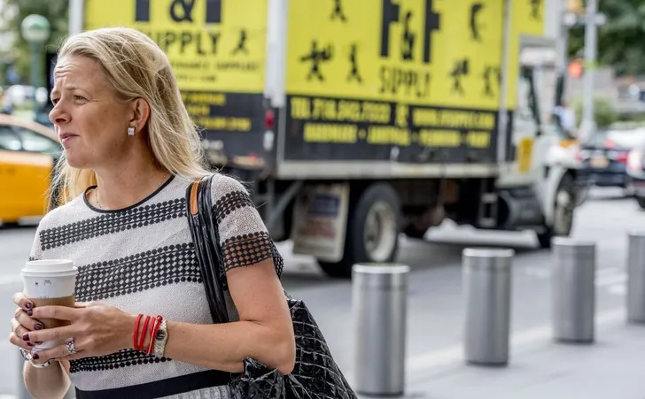 Mabel is in New York om te netwerken voor haar 'Girls Not Brides' organisatie die kindhuwelijken de wereld uit wil helpen. En dat doet ze op killerheels, met een soort hutkoffer als handtas.