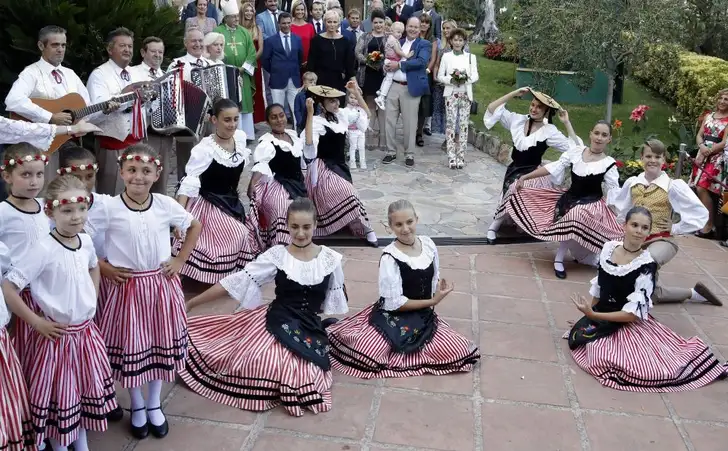 Prinses Gabriella en prins Jacques van Monaco (2) leken eerst wat overdonderd door de uitgelaten festiviteiten, maar draaiden later leuk bij op de Pique-Nique Monegasque.