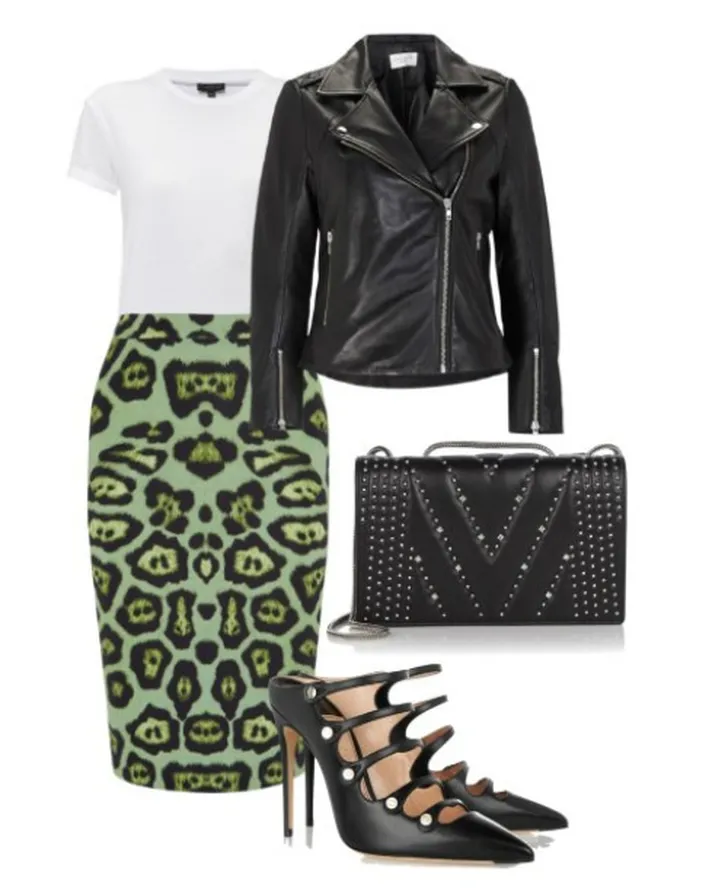 Ga voor een vrouwelijke outfit met een stoere touch. Combineer je mooiste kokerrok met een simpel wit t-shirtje. Draag daarover een leren bikerjack om de outfit een stoere look te geven. Maak de outfit af met een paar killer heels (op en top vrouwelijk!) en een mooie tas waar net al je belangrijke spullen inpassen.