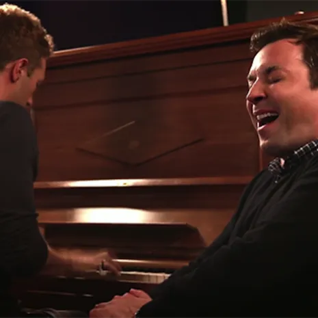 Jimmy Fallon is een man met veel talenten. Hij maakt elke dag mensen aan het lachen in zijn talkshow, interviewt de grootste sterren en kan ook nog eens zingen. Dat laatste bewijst hij met een prachtige cover van 'Life On Mars' die hij ten gehore bracht in zijn talkshow. Jimmy wordt begeleid op de piano door de getalenteerde Chris Martin van Coldplay. Zo mooi!