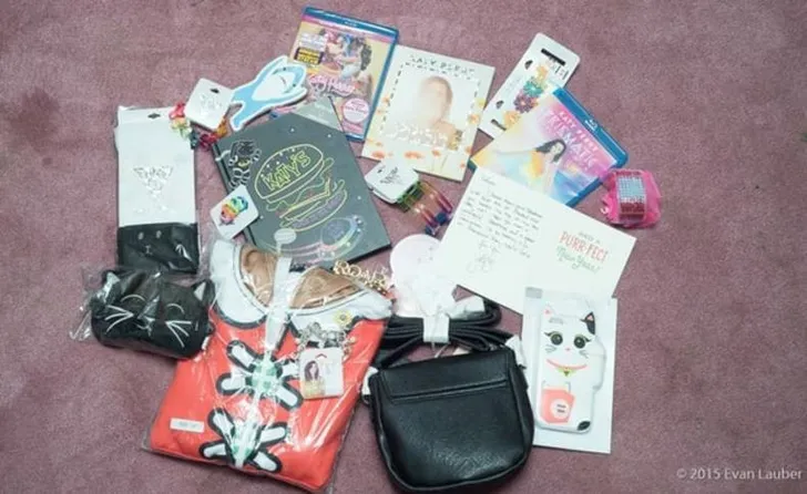 Naast de handgeschreven kaart stuurde Miss Perry haar ook wat cadeautjes: een aantal DVD's, een sweater met oortjes (roarrr!), een rugzakje, een klein zwart kitty-tasje en een lichtgevend iPhone-hoesje. Lief!