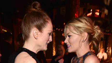 Elizabeth (41) zag er een stuk fleuriger uit dan haar collega Julianne. Zij koos voor een A-lijn jurk met bloemenprint uit de herfst/winter 2015 collectie van modeontwerper Elie Saab. Opvallend: Julianne's zwarte jurk komt uit een lente/zomer collectie. Je zou bijna denken dat de jurken zijn geswitcht...