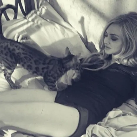 Celebrity cats. Gisteren was het International Cat Day en dat vierden onze favoriete celebs uiteraard door een kiekje van hun huisdier op Instagram te plaatsen. Maar wat wij nog leuker vinden, zijn foto's waar de celebs zelf opstaan. Mét kat natuurlijk. Love it.
