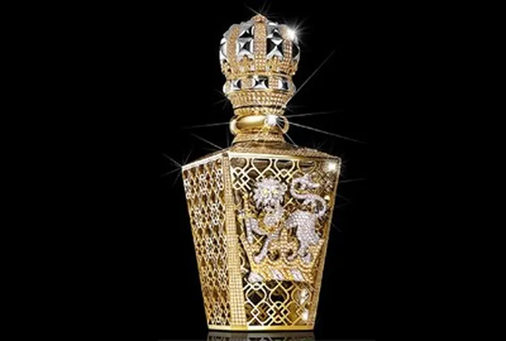 De flacon bestaat uit 2.000 diamantjes! Het kristal en 24 karaat goud zorgen ook voor de bijzondere prijs. Maar dat is niet alles. Zelfs de dop heeft zijn speciaal verhaal: een kroon van goud en diamanten, ontworpen in 1872 door Koningin Victoria.