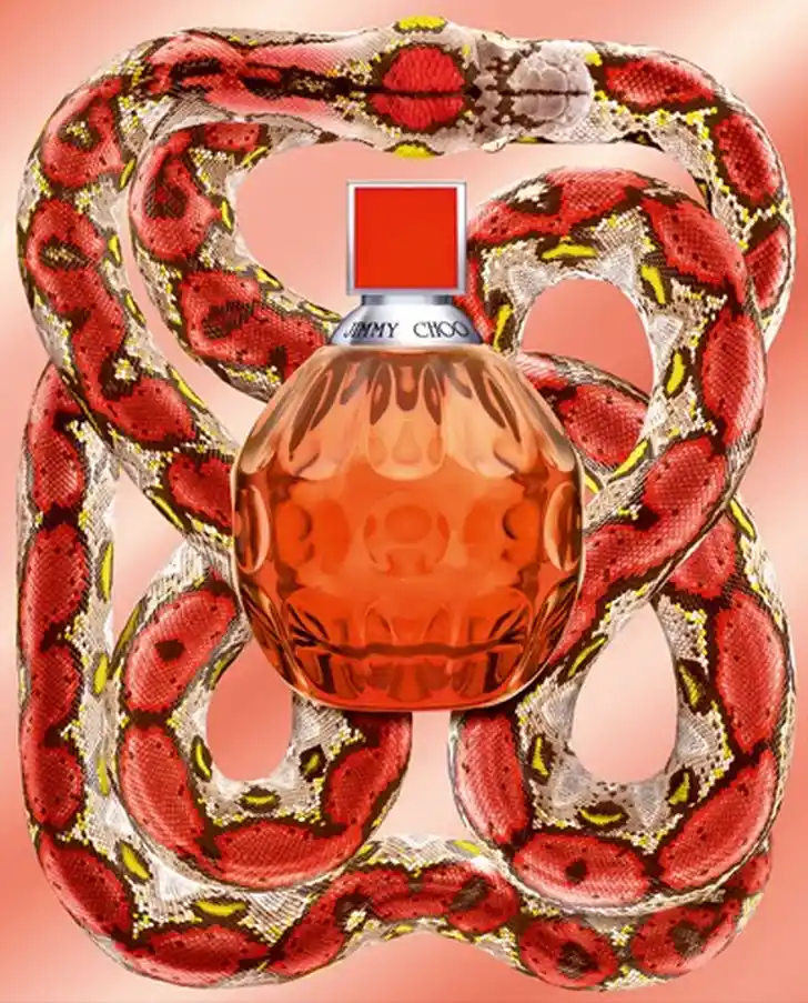 De flacon Het koraalkleurige flesje van EXOTIC is gebaseerd op het ontwerp van de originele Jimmy Choo flacon. Ook de verpakking is zomers gekleurd: een klassieke Jimmy Choo python print in koraal, geel en chocolade.