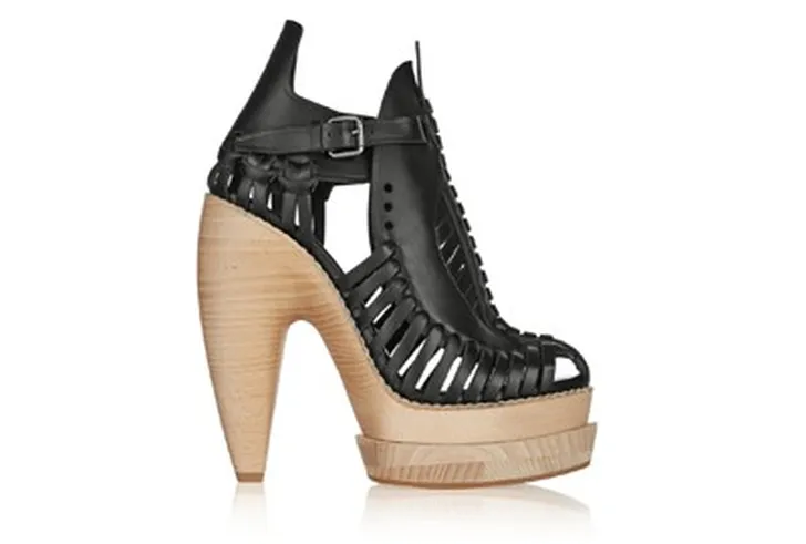 Eindeloos hebben wij naar deze kunstwerkjes van Proenza Schouler gestaard. Het gevlochten zwarte leer, de bijna onmogelijke hoogte van de hak, het is pure architectuur! Leuk met een stone washed jeans en een simpel T-shirt. Durf jij het aan deze wolkenkrabbers onder je voeten te binden? Voor 995,- zijn ze van jou!