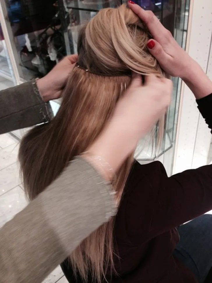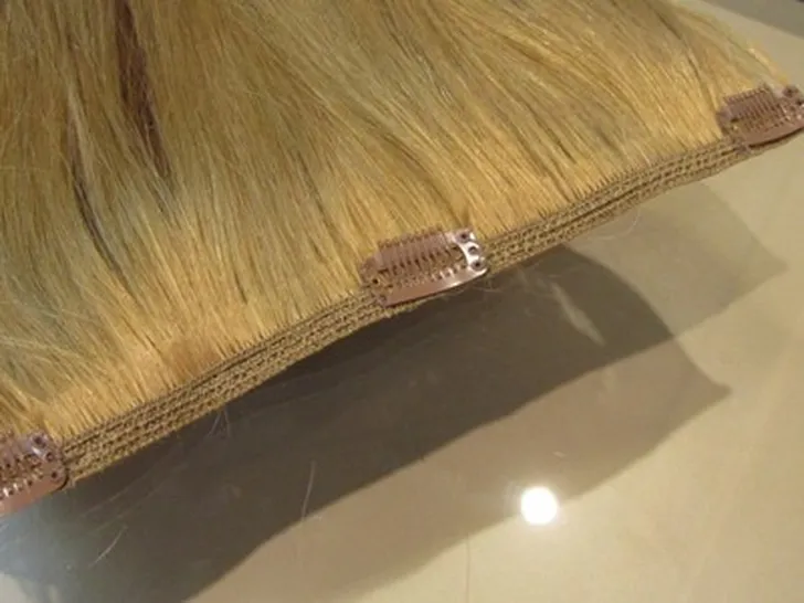 Een groot voordeel van clip-ins is dat het niet schadelijk is voor je eigen haar en dat je ze makkelijk zelf in en uit kunt doen. Hoe werkt het? Gooi je haar voorover, trek een strakke scheiding met een puntkam en klip je extensions van oor tot oor langs de scheiding.