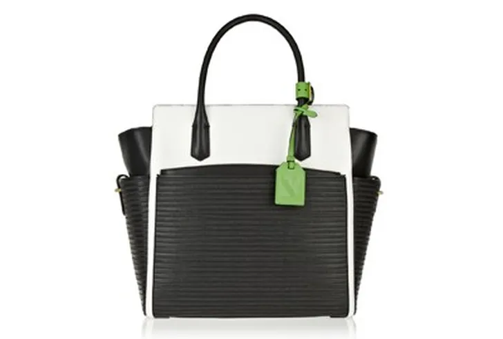 De black and white look in een nieuw jasje. Uh, tasje. Deze Reed Krakoff is als een frisse wind door je tassencollectie...