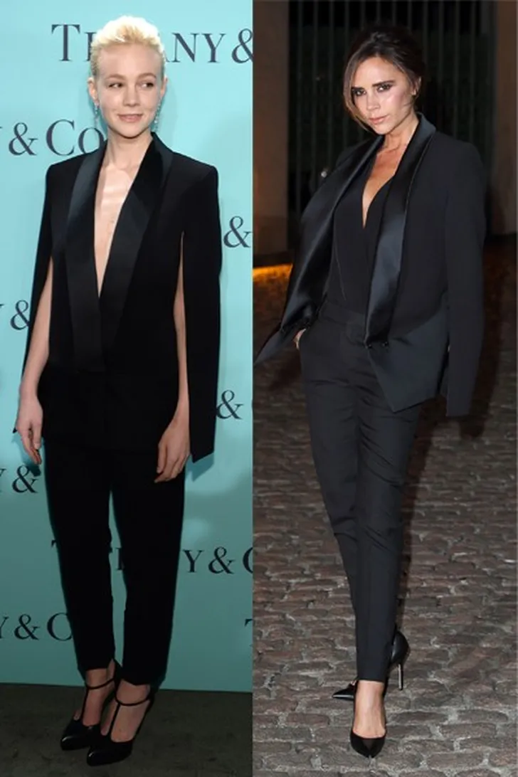 Britse actrice Carey Mulligan verscheen in april op het Tiffany & Co Blue Book Ball in een outfit uit de najaarscollectie van Victoria Beckham. Victoria Beckham verscheen vorige maand in het zelfde pak op The Global Funds first Green Carpet Challenge.