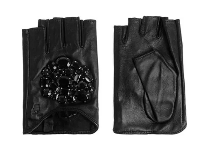 Naast de iconische zonnebril en witte staart zijn de zwarte, vingerloze handschoenen van Kaiser Karl niet weg te denken. Dit glamorous paar handschoenen van de Duitse ontwerper zijn gemaakt van super zacht leer. De glanzende kristallen maken de handschoenen tot een onmisbare fashion trend in je herfstgarderobe!