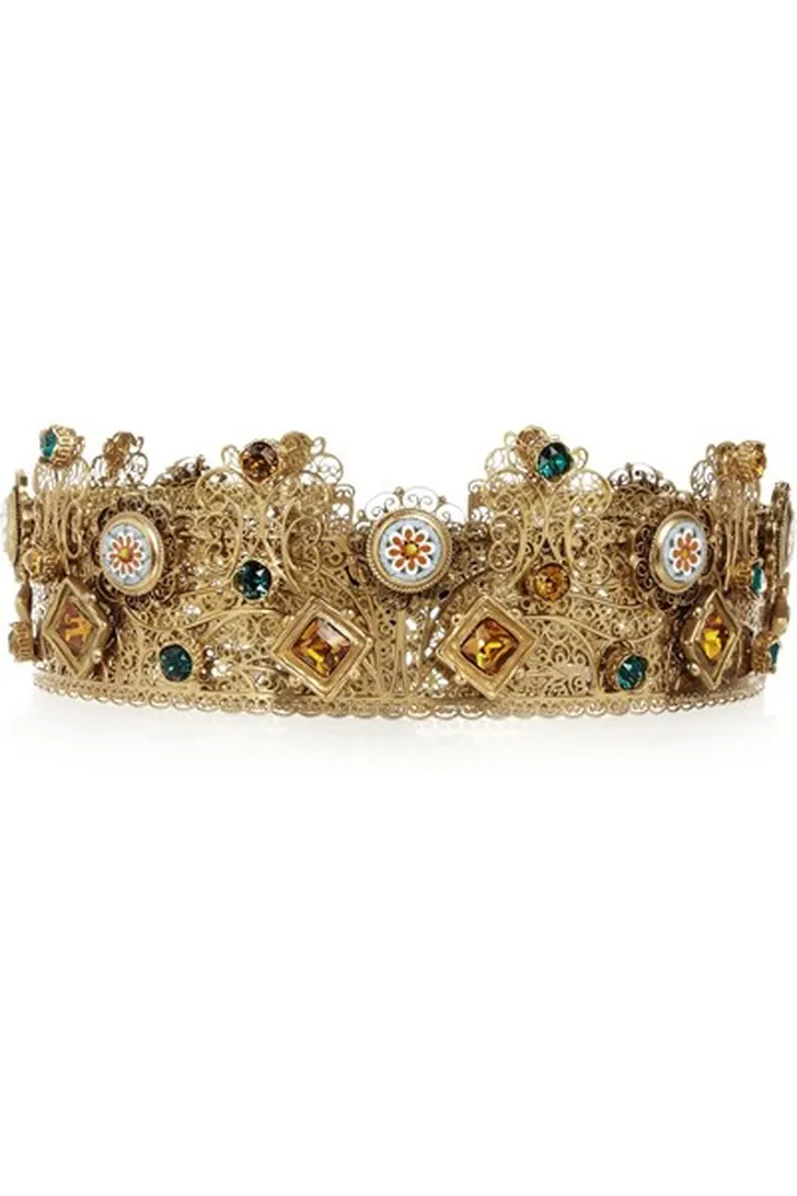Kroon jezelf tot Koninklijke Hoogheid door een vorstelijk kroontje van Dolce and Gabbana te bemachtigen. Goed nieuws: de gouden kroontjes waarmee de modellen in de najaarsshow van Dolce and Gabbana over catwalk paradeerden, zijn namelijk nu te koop!