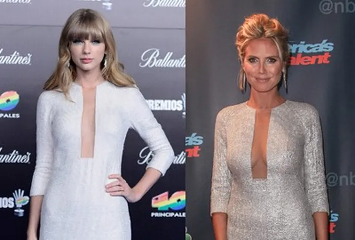 Taylor Swift verscheen in januari op de 40 Principales Music Awards in Madrid in een wit jurkje van Kaufmanfranco. Afgelopen maand verscheen Heidi Klum in dezelfde jurk op een rode loper event van America's Got Talent.