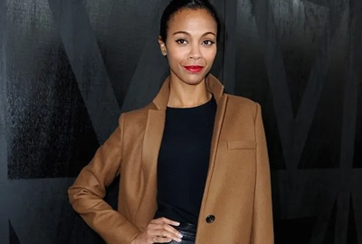 Met haar leren broek, camel-coat en rode lippen, heeft de Zoe Saldana de Miu Miu-look helemaal voor elkaar. Ook haar sn...