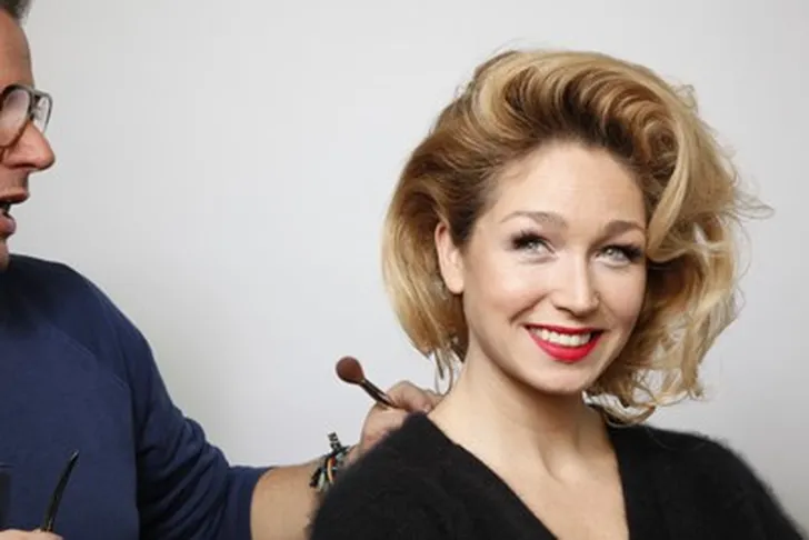 Onze Leco gaf zangeres Do een filmsterrenlook à la Marilyn Monroe: rode lippen, grove krul en lange wimpers. In de nieuwste Beau Monde vind je het eindresultaat, maar eerst: de backstage foto's.