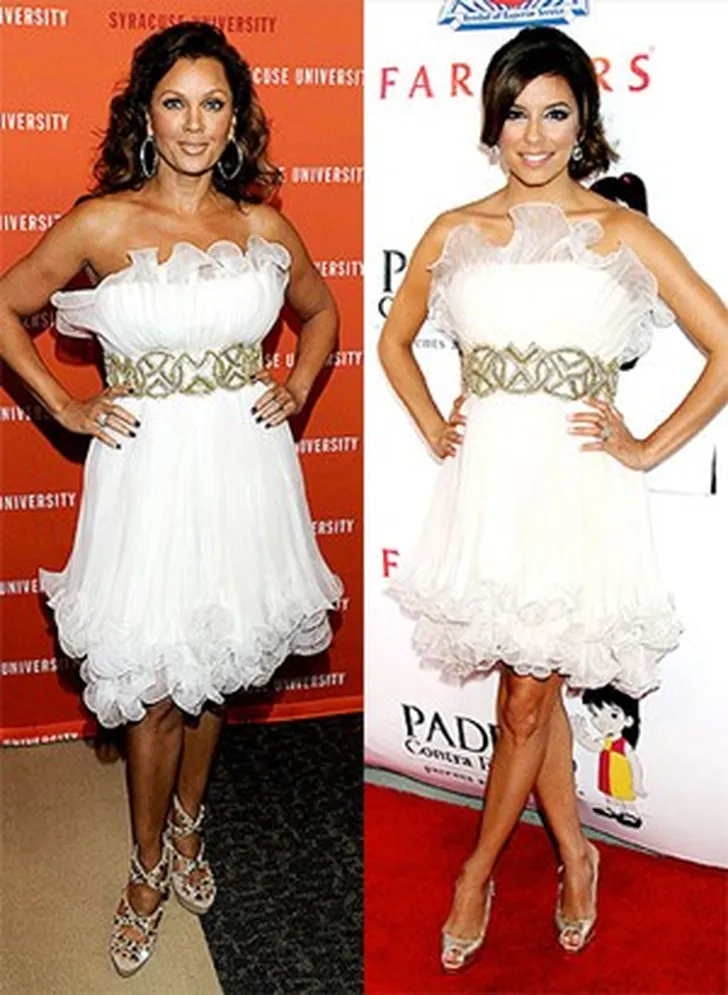 Beide fashionista's vielen voor dit sexy, romantische jurkje van Marchesa. Maar bij wie staat de japon het mooist? Eva of Vanessa.