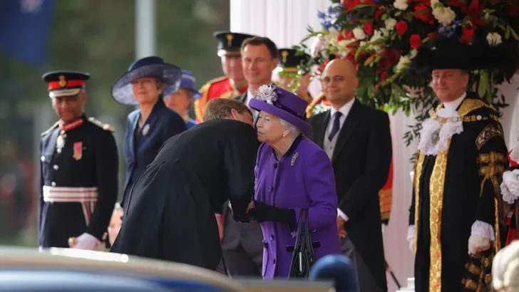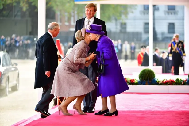 1) Máxima lijkt in katzwijm te vallen voor koningin Elizabeth tijdens een staatsbezoek aan Engeland in 2018. Of zou het toch het lengteverschil zijn?