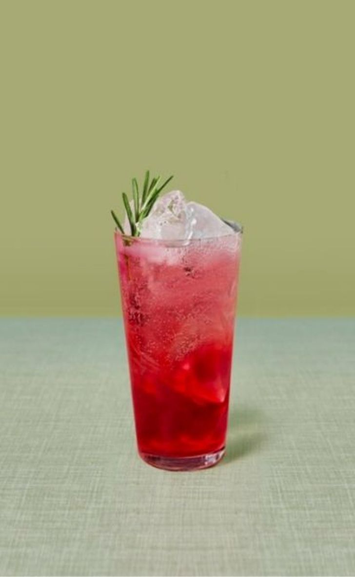 Top je cocktail af met een takje rozemarijn.
